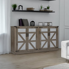 65-Inch Slate Gray Faux Rattan Sideboard with Barn Doors Rustic Sideboard, 4-Door Storage for Living Room, Entryway, Bedroom