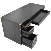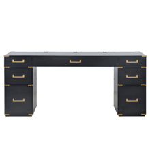 70 inch classic and traditional executive desk with metal trim, writing desk with 2 file drawers, USB ports, and sockets, black