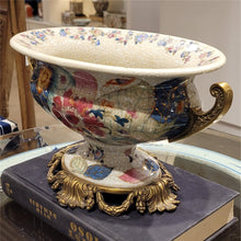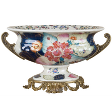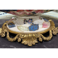 7"H Porcelain Compote with Bronze Ormolu - Tobacco Leaf