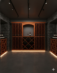 Elevate your home wine cellar with our Foot Wine Cellar, holding up to 336 (750 ml) bottles. Part of the RediCellar collection, this luxury wine storage solution offers elegance and functionality, perfect for growing wine collections. Features individual bottle storage with a display row to showcase labels, a tasting table with a curved arch and versatile diamond bins for various wine and liquor sizes, perfect for home bars. Customize the finish and design to seamlessly fit your space and showcase your bottles in style.
