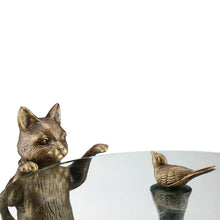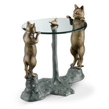 This unique Curious Cats End Table features two sculptural cats peeking over the table top at a beautiful bird in the center of the table.  This table adds a piece...
