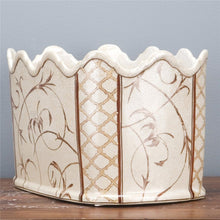 12L X 8.5W X 8"H Porcelain Ormolu Planter - Martinsville Dimension:12x8.5x8 Item Type:P Loc:[045-26] Category: PORCELAIN Pattern Name: MARTINSVILLE
