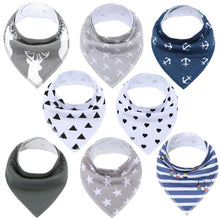 - PACK OF 8 BABY BANDANA BIBS : fashionable 8 trendy Solid Color unisex bibs. you able to match the bibs to baby's outfits.Neutral patterns look great on both boys and girls,it’s much more convenient to change and wash a bandana bib than a dress!