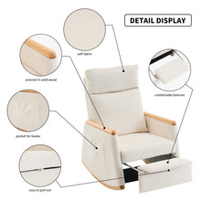 Upholstered Rocking Chair Comfortable Living Room Rocker Lounge Armchair with Solid Wood Base High-Back Porch Rocker Nursery Rocker w/Side Storage Pocket