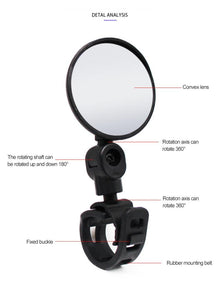 - ROTATABLE: This outstanding bicycle mirror is super practical and offers you a clear view, so you are covered all the time. The base allows a 360˚ rotation, so you can adjust the mirror with ease on every type of bicycle.