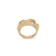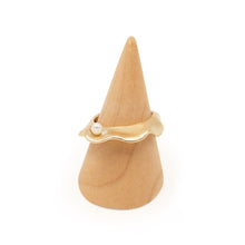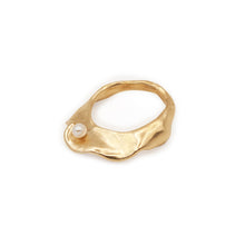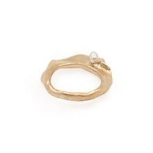 Hand carved and lost wax cast in either brass or sterling silver. Set with a small freshwater pearl. Very easy to wear and layer with other pieces.