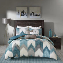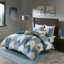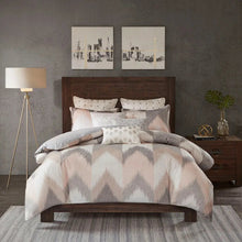 Elevate the beauty and style of your bedroom with the INK+IVY Alpine Comforter Mini Set. This cotton comforter set flaunts a sophisticated ikat chevron print on the face with a solid reverse to create a striking modern and elegant look. Hidden bartacking in the comforter secures the filling and creates a clean duvet-like finish. The 2 matching shams coordinate with the design of the cotton comforter to complete this dynamic bedding set. This comforter set is OEKO-TEX certified, meaning it does not contain any harmful substances or chemicals, and uses an antimicrobial treatment that provides built-in freshness protection, reducing the growth of odor causing bacteria to keep fabric lasting longer. Euro shams and decorative pillows are sold separately.