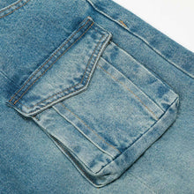 American High Street Vintage Washed Multi-Pocket Workwear Jeans Loose A-Line Wide Leg Long Pants for Men
