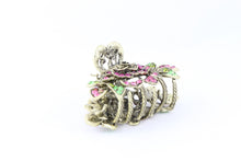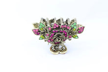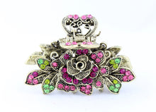 Antique bronze finish hair claw clip on a rose with pink stone petals for that grand look.