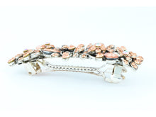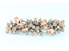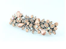 Antique silver metal hair barrette clip with tear drop crystals - Peach