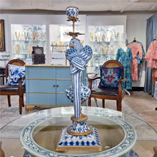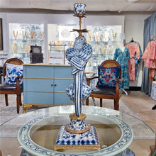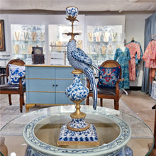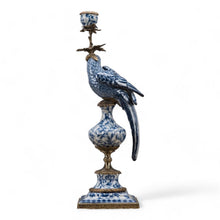 6"L X 6"W X 19"H PORCELAIN PARROT CANDLE HOLDER WITH BRONZE ORMOLU- BLUE AND WHITE (LEFT) & (RIGHT) REPRODUCTION HAND PAINTED PORCELAIN PARROTS CANDLESTICKS Accessories Type: Figurines PT Item Type:...