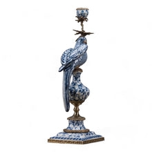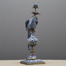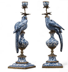19"H Antique Style Parrot Porcelain & Bronze Candlesticks - Candle Holders
