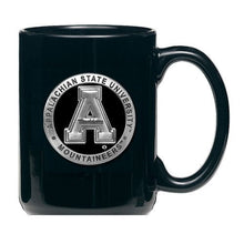 This coffee mug is decorated with a fine pewter casting. It is microwaveable and dishwasher safe with no heat cycle.. The glass coffee mug is 16 ounces, and the ceramic coffee mug is 15 ounces.