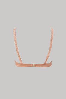 The underwire bikini top features ruched cups detail and elastic ruched straps. The ruching detail on the straps offer extra support, adds texture, and creates a flattering look. Made from a soft shiny finish fabrication, which gives it a luxurious and sleek appearance and provides a comfortable and smooth feel. To ensure a customizable comfortable fit, the bikini top includes three back loops for fit adjustment. Lastly, the bikini top is double layered, adding durability to the garment ensuring that the top is not see-through when wet. Shell and lining: 80% nylon, 20% spandex.