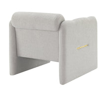 Armchair with wavy armrests, metal decorations on both sides of the armrests, made of Teddy cloth, light gray