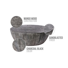 Arthur 36 Inch Farmhouse Style Handcrafted Mango Wood Round Drum Shape Coffee Table