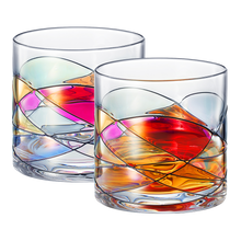 Artisanal Hand Painted Whiskey - Gift for Dad, Friends, Boyfriends, Renaissance Romantic Stain-glassed Windows Cocktail Glasses Set of 2 - Gift Idea for Birthday, Housewarming - 9.6 OZ Glassware