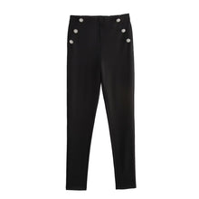 Autumn Women Clothing Jewelry Decorated Row Button Mid Waist Bottoming Trousers