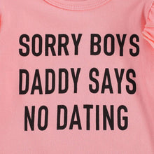 - DESIGN -sorry boys daddy says no dating outfit,newborn infant baby girl sorry boys daddy says no dating outfit,little kids ruffle long sleeve romper,round neck bodysuit,solid color striped t-shirt tops,leopard floral skirt