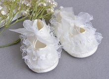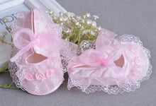 - MATERIAL: Upper: satin+lace,Lining:cotton,Outsole:cotton+rubber dots. Made of breathable upper and soft sole, lightweight and flexible being great for baby's foot development.