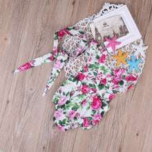 Baby Girls Summer Romper and Headband Jumpsuit Floral Sun suit Outfits 2 pieces With Bow In Modern Floral Design