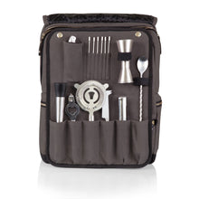 So this guy walks into a bar… No wait, that’s not how this one starts. So this guy walks in carrying a bar… That is, the Bar-BackPack. This original design features an impressively large amount of features and space, so you can bring the full bar experience with you wherever your adventures take you. This insulated, padded tote has been specially designed to hold up to 3 large bottles. It features a zippered front pouch that has pockets sized to hold your phone and cards with additional space for extra necessities. The front main pouch features a removable 16-tool bar tools organizer (including six Cocktail Picks, one Hawthorne strainer, tongs, one cocktail spoon with hammer, one muddler with plastic head, one double-sided Jigger (1oz/1.5oz), one dual-leverage waiter-style corkscrew, one two-piece shaker (24oz/16oz), one fork-tipped serrated paring knife, one combination bottle/can opener, and one acacia cutting board), essential for making the most elaborate of cocktails. We know the best thing to pair with your cocktail is a light snack, so we’ve designed the side pockets to fit the small cutting board so it can double as a cheese/charcuterie board too. This cool gray and black design is made of waxed cotton canvas. Now how did that joke end again?