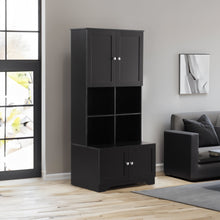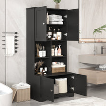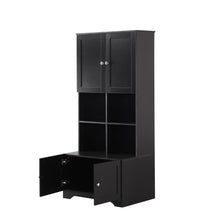 Bathroom storage cabinet, 4-door independent cabinet, adjustable shelf, open multi-layer shelf, black
