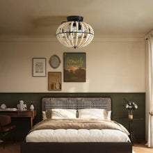 Rustic ceiling light:The semi-flush mount ceiling light fixture is made of high-quality log-colored beads and durable black metal chassis, with a unique lamp body style design, high-quality metal , anti-corrosion, anti-rust, durable.