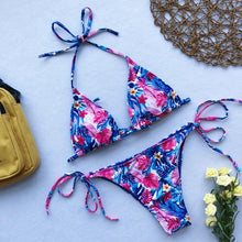 Beautiful Multicolored Women High Waist Bikini Swimwear Women Halter Push Up Bikini Set Swimsuit Women's Flower Print Bikini High Waist Beach Swimsuits Sporty Two Piece Bathing Suit Female Beach Wear Bathing Suit