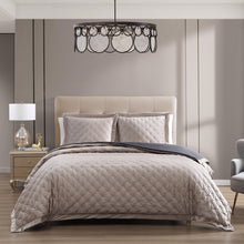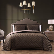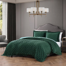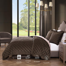 The cozy, soft feel of velvet makes the 3 Piece Velvet Comforter Set inviting as the perfect bedding set for snuggling. The puffy, tufted 250 gsm polyfil comforter has a microfiber reverse side for easy care and comfort. The set also includes 2 shams, and all 3 pieces are framed with a velvet flange. This Comforter set comes in 4 beautiful colorways of Dark Brown, Hunter Green, Navy, Pumice Stone. As a bonus, the set is packaged in a reusable velvet tote.