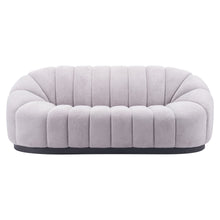 The Bhutan Sofa has a polyester shearling style fabric. This sofa works great in any space, whether it is hospitality or residential. The shape and design are glam, modern, deco, and boho all at the same time.
