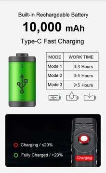 - LONG-LASTING BIKE LIGHTS: The headlight for bike has built-in rechargeable battery, 10000 mAh, up to 10+ hours battery life. You can use the cycling light as a power bank. Don't worries about changing the battery in emergency situation.