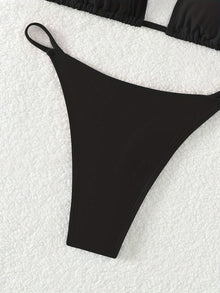 Bikini Solid Color Triangle V Neck 2 Piece Bikini Set for Women – Stretchy Double Strap Tie Back V String Swimwear with Lace Up Detail – Flattering Beach Vacation Swimsuit for Confident Summer Style and Poolside Fashion