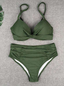 Bikini Swimwear Women High Waist Swimsuit Solid Color Bikini Set Women's Push Up Underwire Top Bottom Bikini Bathing Swimsuits Beach Wear Padded Push Up Bikini Set Female