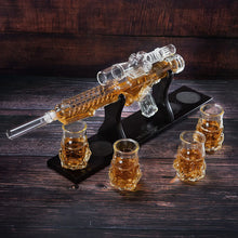 - WHISKEY DECANTER AND GLASS SET: Gun Decanter Set will have you feeling like the ultimate space adventurer. Can you imagine how classy this will look in your bar? This handmade Gun whiskey decanter will start your drinking with a bang and have your fellow Padawans in awe. The rifle with its details is sure to be a wonderful addition to any home bar.