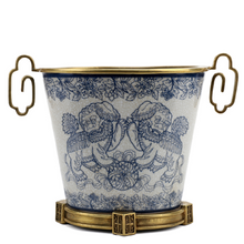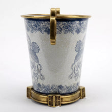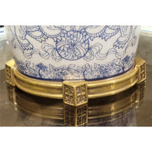 Blue and White Lucky Foo Dogs Pattern Oval Basin With Bronze Ormolu