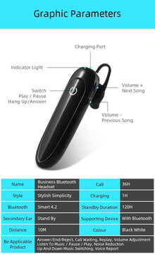 Bluetooth Wireless Earphones Single-Ear Hands Free Business Bluetooth Headset 24 Hours Playing Time for Business/Driving Charging Case for Sports Running Workout Gaming