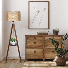 Boho Tripod Floor Lamp with Shelves, Mid Century Wood Standing Lamp with Rattan & Fabric Shades, ON/Off Foot Switch Office