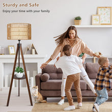 ?【Rubber Wood Tripod Floor Lamp】This tripod lamp comes with two removable lampshades, one is a 100% hand-woven natural rattan shade and one is a soft fabric shade. Combination of natural elements makes this rattan floor lamp perfect for bohemian, rustic, vintage and industrial home styles. It has a unique stem with three rounded wooden holders that makes the boho floor lamp stable enough, prevent tipping and keep you and your family safe at home.