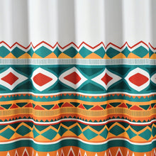 This Boho Viviane Geo Fringe Shower Curtain combines eclectic boho colors with classic a southwest printed pattern. Give your bathroom a pop of color and unique style when you hang this decorative curtain up! The bottom is edged with a bohemian-inspired tassel fringe.