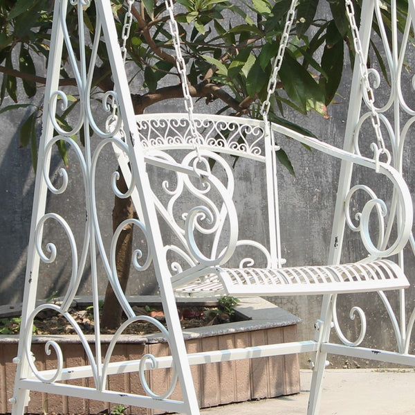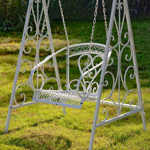 "BORDEAUX" IRON SWING CHAIR IN ANTIQUE WHITE