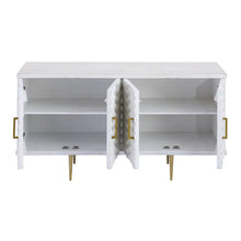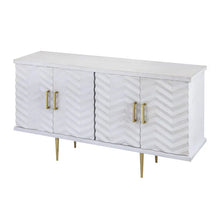 The Brendle 4-Door Credenza has a whitewashed painted finish and solid wood top. Door fronts feature a carved herringbone pattern that covers the entire front of the piece. Inside the...