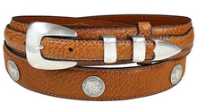 • Made from High-quality genuine leather. Western Ranger Belt with hand-polished antique silver smooth buckle set and 5 Buffalo Indian Head coin conchos.