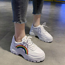 Casual Winter Women Thick Sneakers White Shoes Autumn Winter Fashion Platform Shoes Female Lace Up Rainbow Vulcanized Shoes Comfy Fashion Sneakers Breathable Athletic Casual Shoes