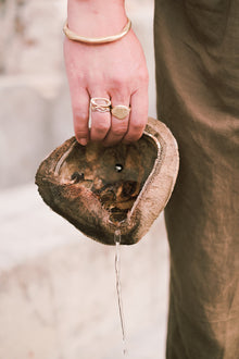 Hand carved and lost wax cast in either brass or sterling silver.