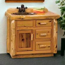 Cedar Log 36" Vanity is hand crafted and features sturdy mortise and tenon construction, with superb finishes. Each log is handpicked to create a unique, one of a kind vanity that is full of character. Expect to see knots, beetle tracks, burls, and other distinctive characteristics that add to the rustic beauty of the furniture. Our manufacturer is located 1 hour away from cabinplace.com, which gives us an exclusive relationship that ensures your furniture will live up to our high standards - and yours! The Manufacturer offers a Limited Lifetime Warranty on all furniture products.