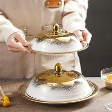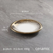 Ceramic high-end golden gold round ceramic tray Piring ASalad Steak Mewah Keramik Makanan Barat Eropa Piring Steak dinner plate