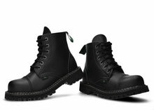 If you are looking for perfect vegan combat/work boots with a steel toe this is the best, sturdy, and stylish shoe ever. Designed to protect your toes from heavy objects however keeping the great style in mind.