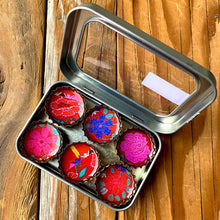 Each magnet set comes in the display tin (just like in the picture) and the magnets are strong enough to hold the entire tin on a magnetic surface for display.