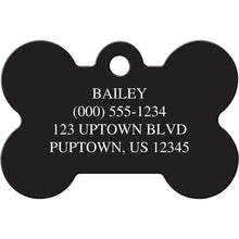 Personalization includes up to 4 lines of engraved text on the bone-shaped pet ID tags.